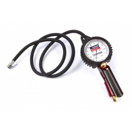 Met deze bandenvulmeter van het bekende merk Michelin vult, ontlucht en meet u de spanning op van uw banden. Dit product is inclusief een pompnippel en een manometer met een schaalverdeling van 0-11 bar. De luchtinlaat is 1/4", de werkdruk 0.7 tot 12 bar. De luchtslang is 150 cm lang. Gemaakt van hoogwaardig materiaal en geschikt voor de professionele autogarages.