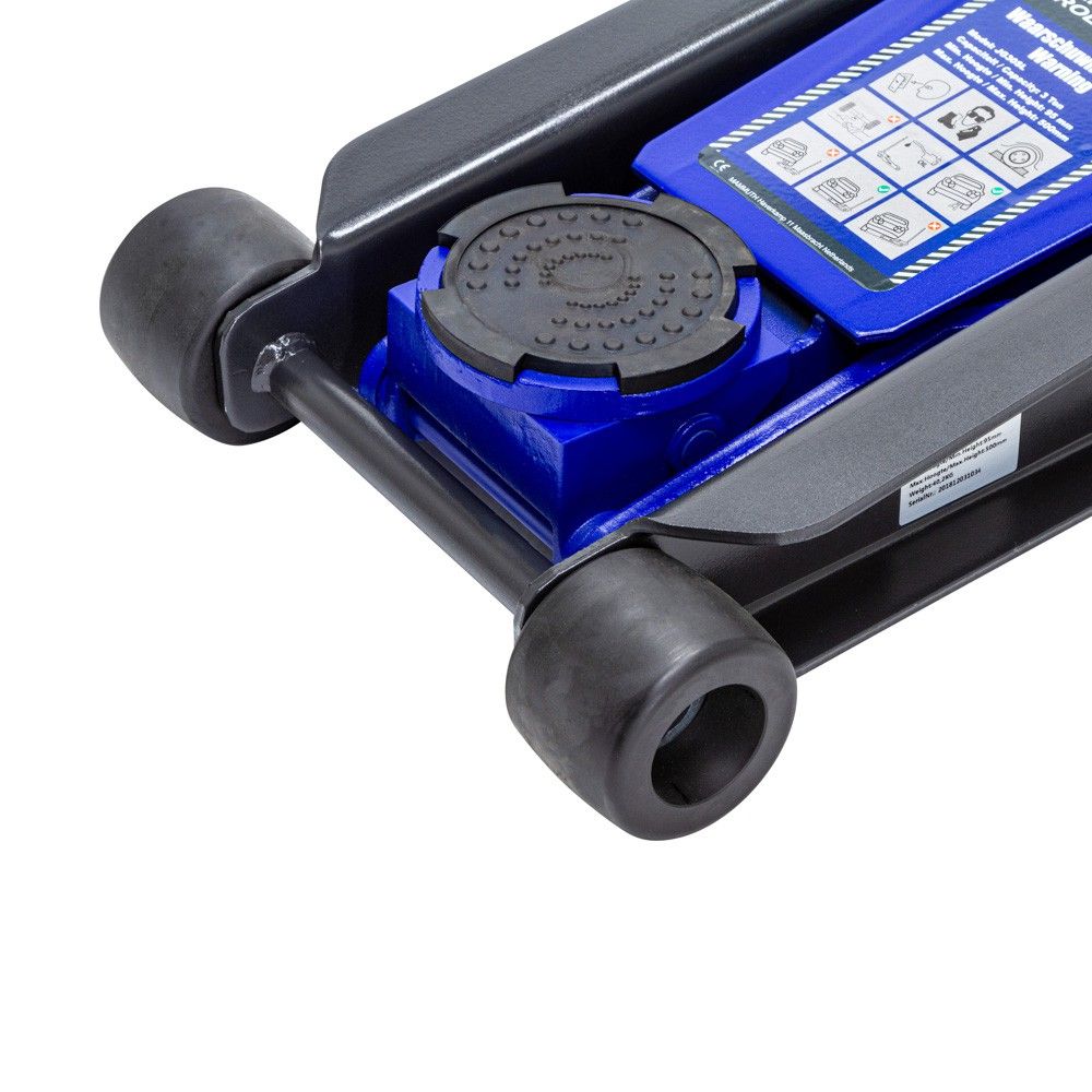 De autokrik beschikt verder over een makkelijk te demonteren pompstang met foam protector, een dubbele plunjer voor extra hefsnelheid, een rubberen beschermpad, een overdrukventiel en 4 stevige PE wielen, waarvan 2 zwenkwielen die zorgen voor extra mobiliteit.